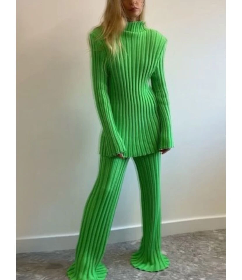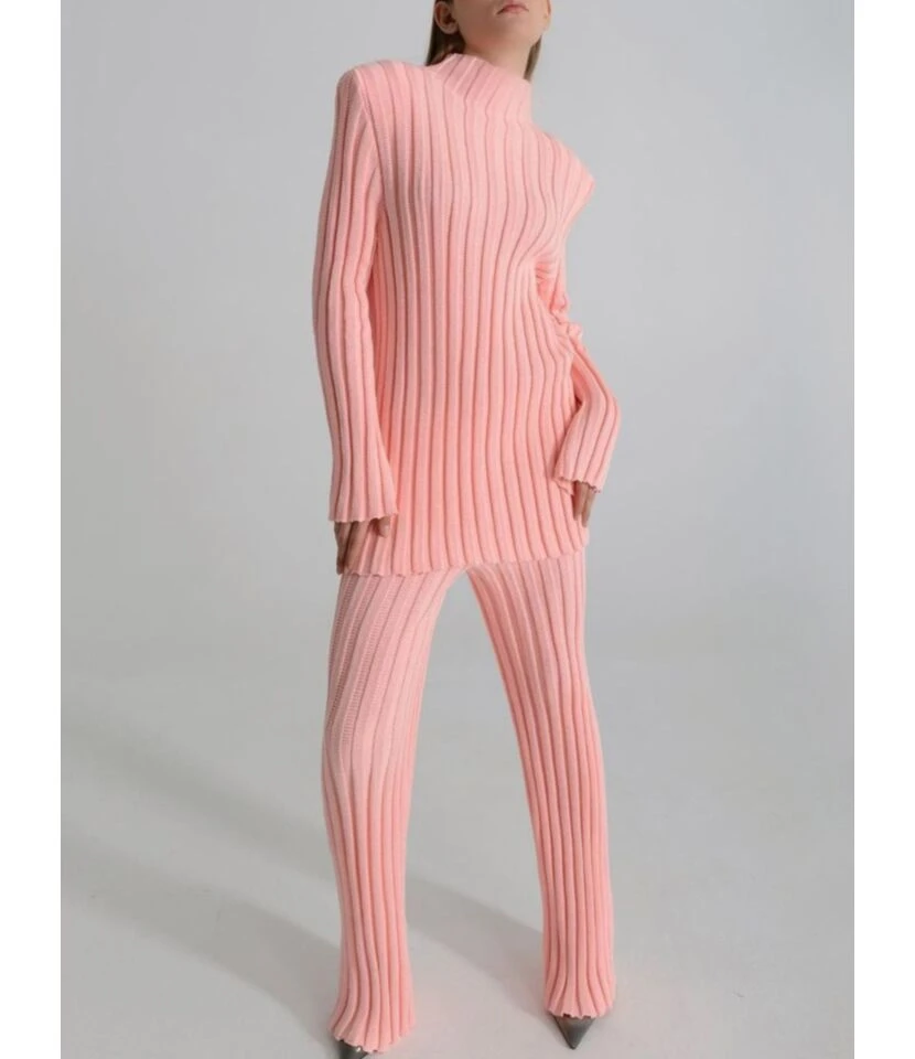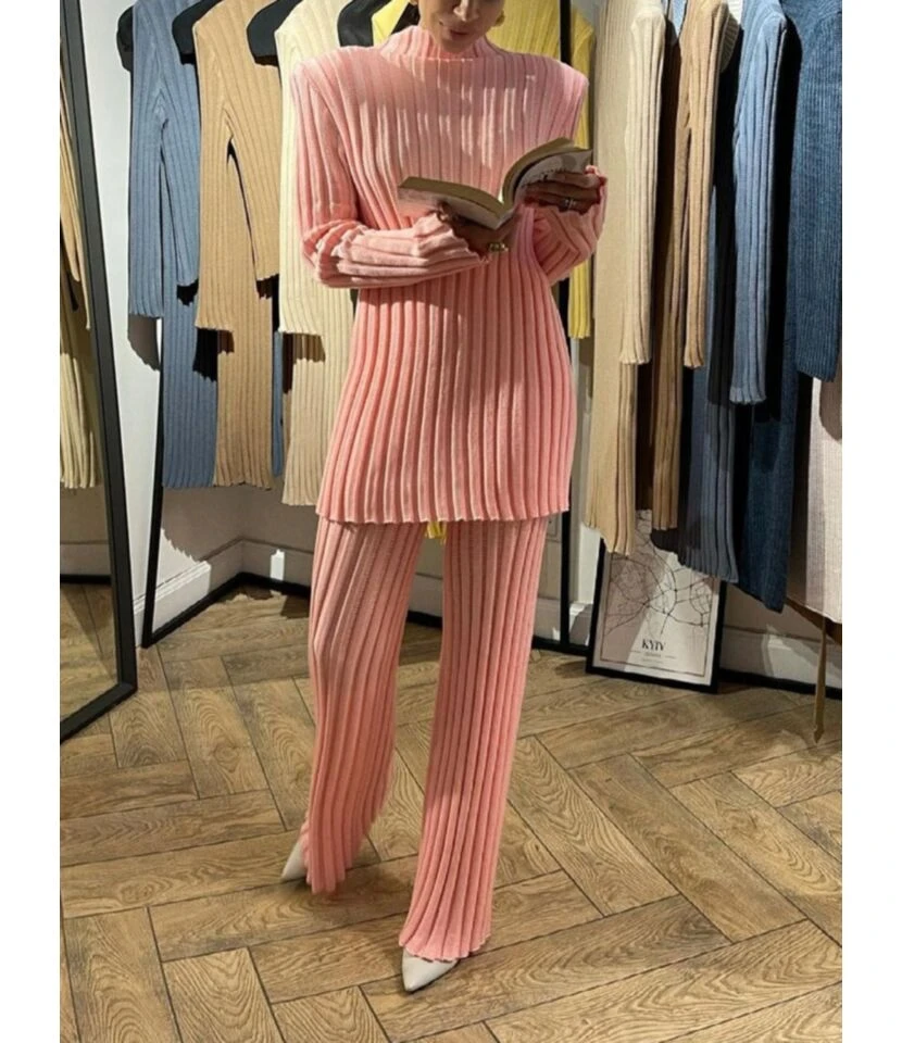 Be the first to review “2pcs Ribbing Sweater Sets Shoulder Pads Long Sleeve Top Wide Leg Pants 210813311” Cancel reply