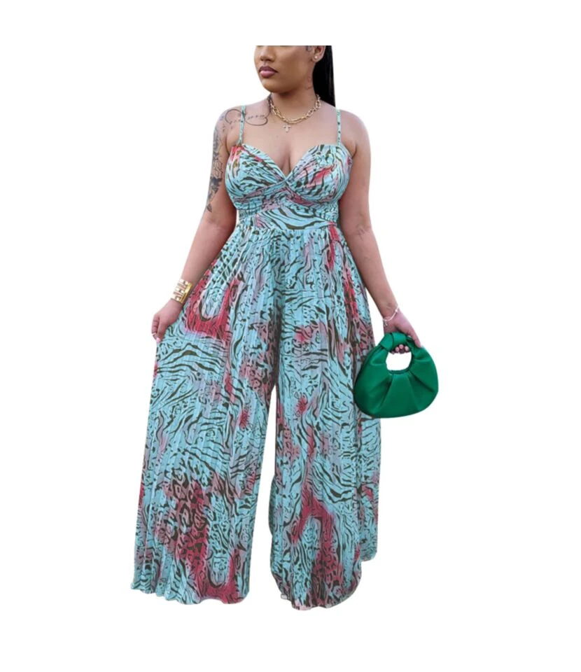 Open-Back Suspender Loose Print Wholesale Jumpsuits SJ183641