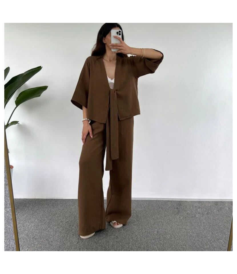 Be the first to review “Casual Loose Plain Tie Three-Quarter Sleeve Cardigan Trousers Two-Piece Set Wholesale Womens Clothing N4623062100008” Cancel reply