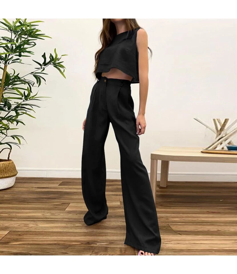 Long Blazer Wide Leg Pants Crop Top Stylish Printed Suit Wholesale Women Clothing SOV464120