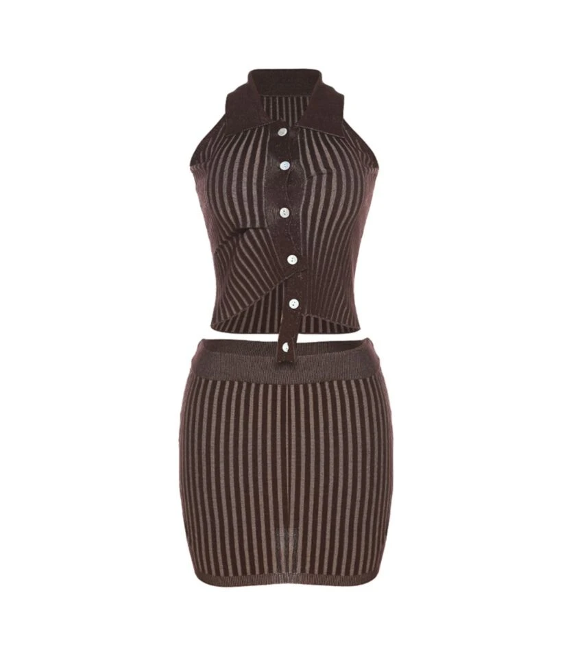 Sexy Single-Breasted Striped Knit Top And Shorts Set Wholesale Women’S 2 Piece Sets V5923051300005