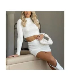 Elegant Lace Solid Color Crop Tops Irregular Skirt Suit Wholesale Women’S Clothing N462303280017221