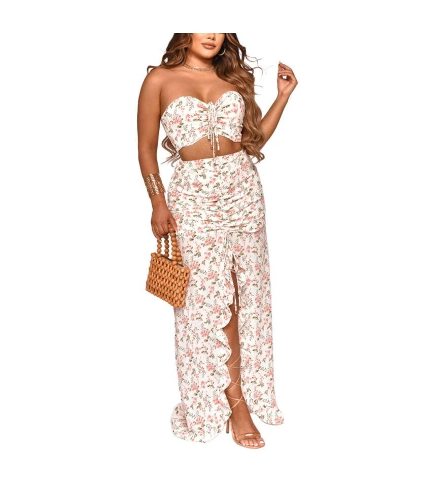 Be the first to review “Floral Printed Resort Style Tube Tops & Ruffles Slit Maxi Skirts Sexy Wholesale Womens 2 Piece Sets SON532232” Cancel reply