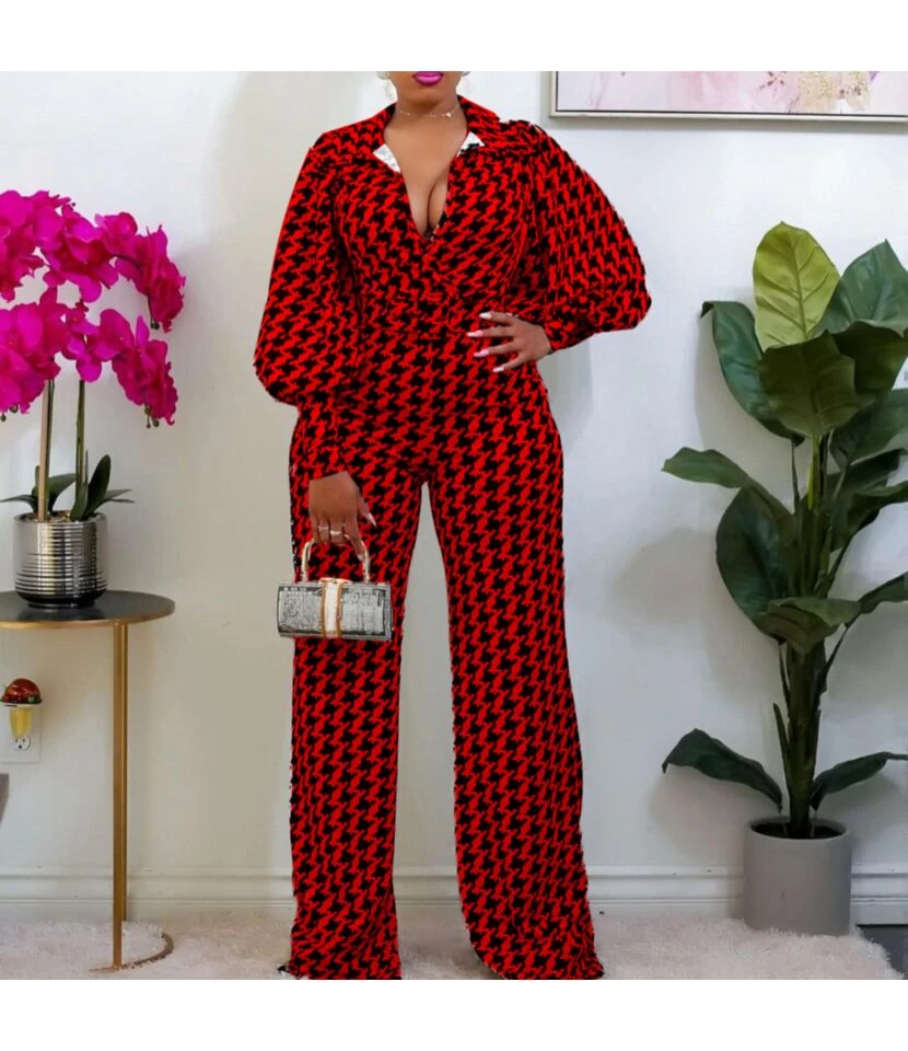 Sexy V-Neck Nightclub Long Sleeve Wide Leg Wholesale Jumpsuits SJN562578