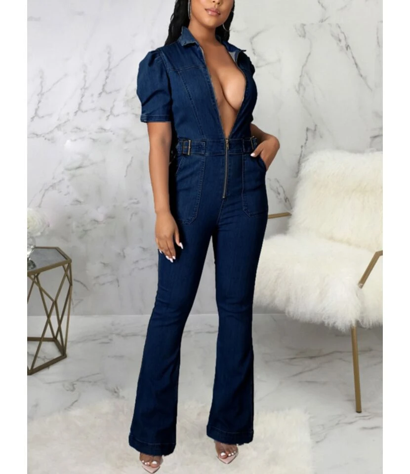 Be the first to review “Lapel Collar Zipper Short Sleeve Denim Jeans Rompers 210810026” Cancel reply