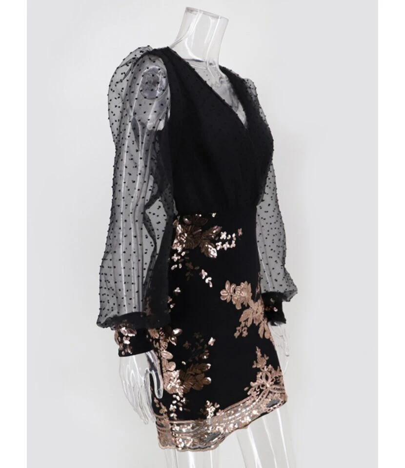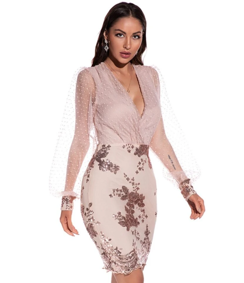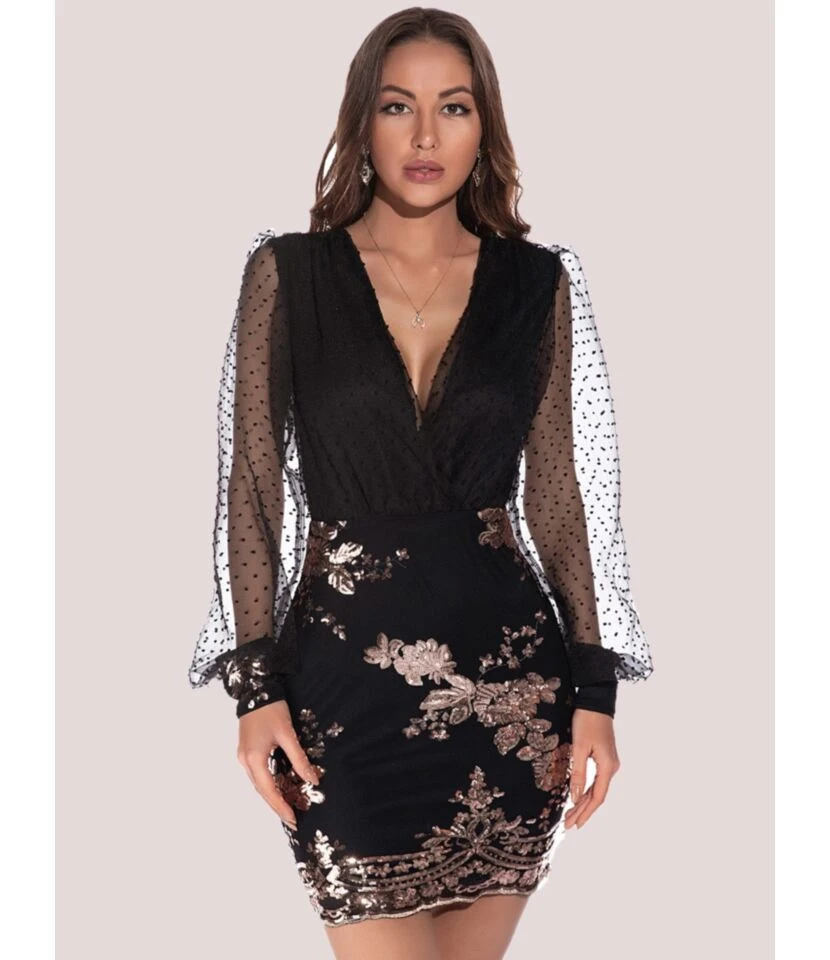 This for the polished aesthetic and has discriminating tastes. As you may know, fashionistas aren’t big on mesh sleeves, but we’re happy to report that they’re perhaps even more appealing than the other eternal trend. The wide mesh sleeves balance out the biceps and make them appear smaller in comparison, which is one of the reasons why this sequins stitch party dress is so appealing. Mesh sleeves adorn this v-neck dress, giving it a much more sophisticated feel. You can wear it to parties and other conservative situations, as well as out on the town. To put it another way, it can be dressed up for practically any occasion. Sequins stitch is a must-have party type dress. This is the epitome of style. This dress of our collection is fashioned from soft stretch fabric and decorated with a bold sequins stitch. This dress looks stunning with heels and you’ll be the missed evening in this party dress.