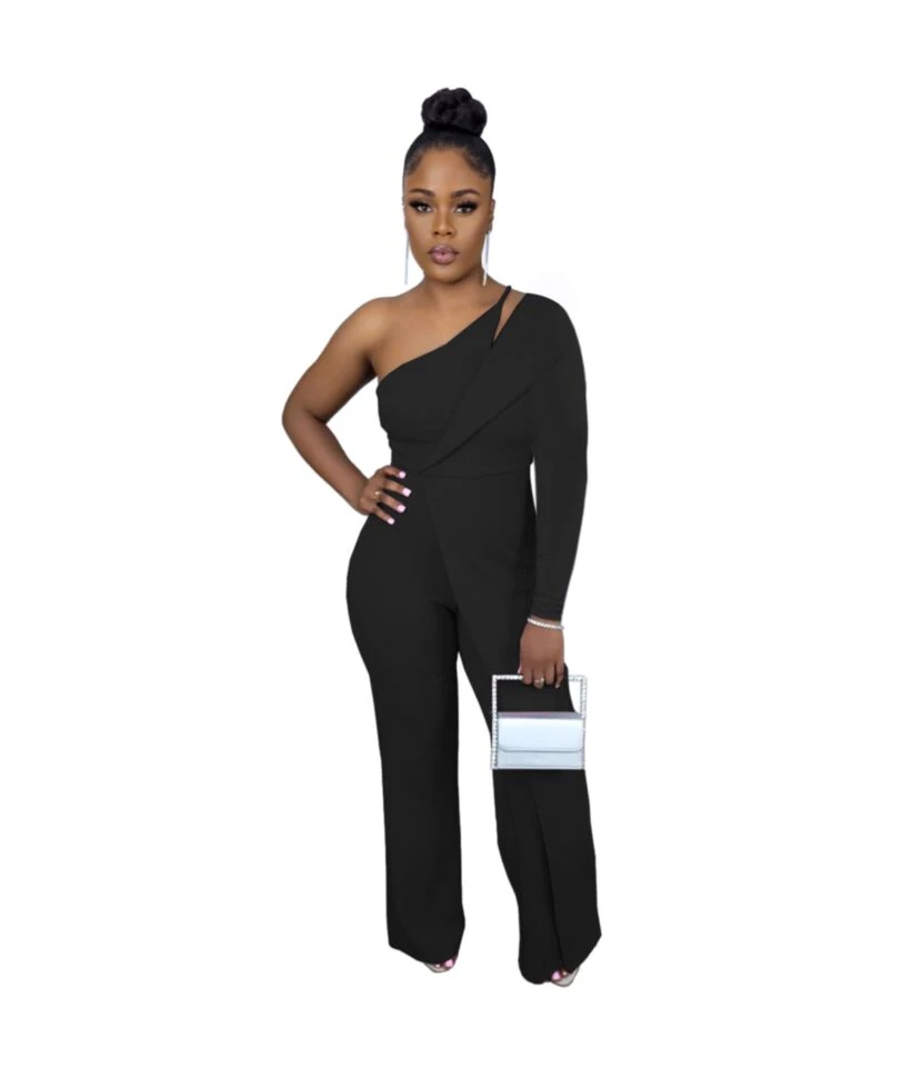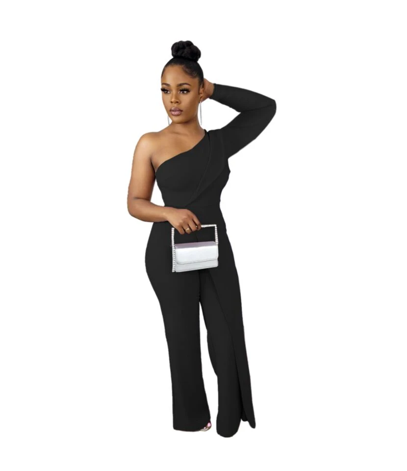 Sexy V-Neck Nightclub Long Sleeve Wide Leg Wholesale Jumpsuits SJN562578