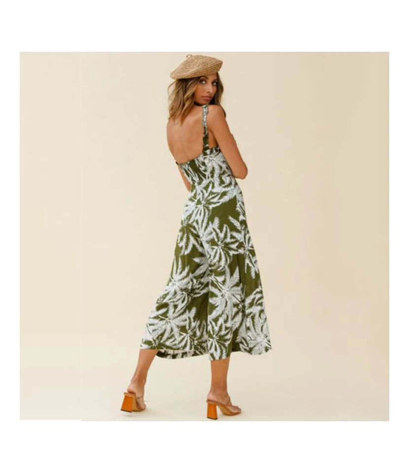 Be the first to review “Palm Print Strap Ruffles Sling Midi Wide-Leg Womens Jump Suits Vacation Wholesale Jumpsuits SJ531349” Cancel reply