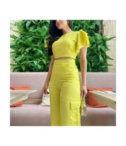 Solid Color V-Neck Back Tie Suit Top & Mesh Panel Pants Wholesale Women’S 2 Piece Sets SO5117721