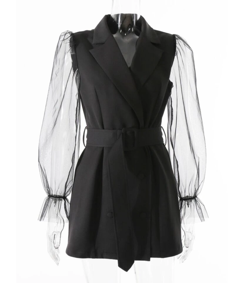 Treat yourself with this glamorous and extremely beautiful See-through Lantern Sleeves Collect Waist Suit Skirt. This suit skirt has become a top seller of SheStar because of its extremely beautiful See-through Lantern Sleeves. YES, these sleeves are actually a game-changer and will take your personality to a next level.
