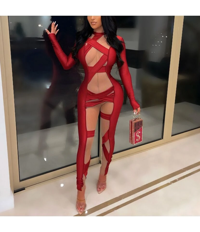Be the first to review “Sexy Tight Mesh Stitching Long Sleeve Tie-Up Women Jump Suits Sexy Wholesale Jumpsuits SJ203714” Cancel reply