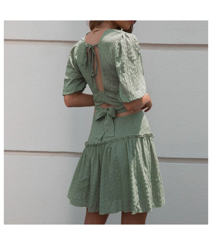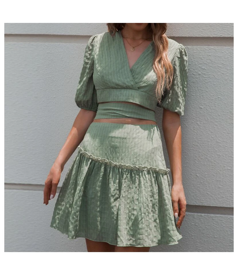 Be the first to review “Sexy V-Neck Short-Sleeved Crop Tops & Mini A-Line Skirt Splicing Solid Color Wholesale Womens 2 Piece Sets SON561522” Cancel reply