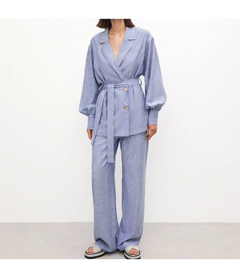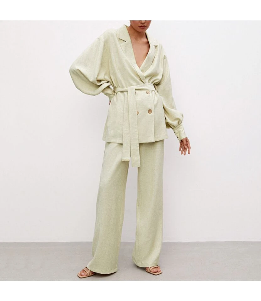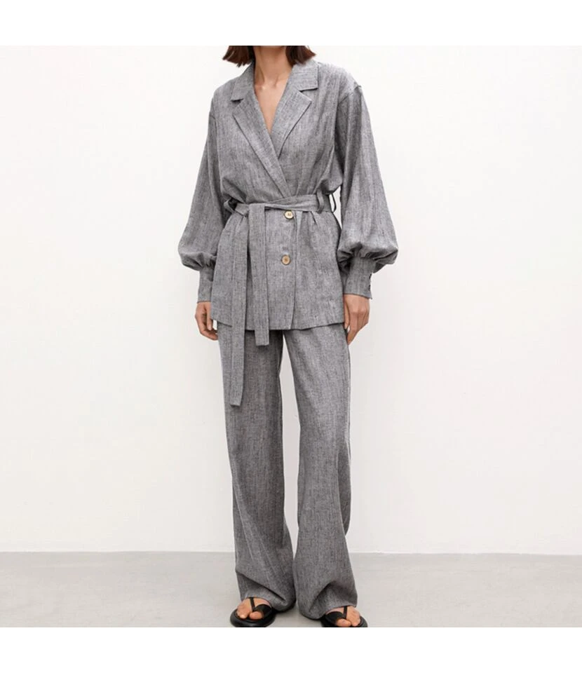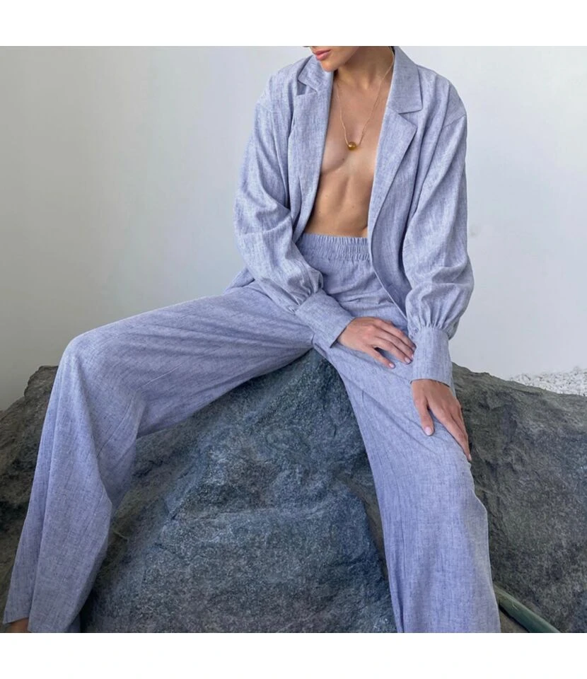 Long Blazer Wide Leg Pants Crop Top Stylish Printed Suit Wholesale Women Clothing SOV464120