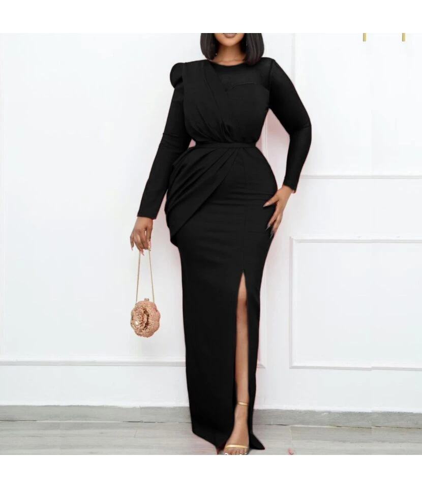 Fashion Solid Color Long Sleeve High Waist A-Line Dress Wholesale Dresses N5923080800075
