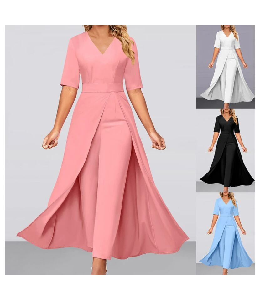 Solid Color Wholesale Jumpsuits V Neck Casual Fashion Women Outfits SJ230178
