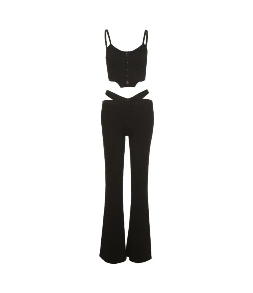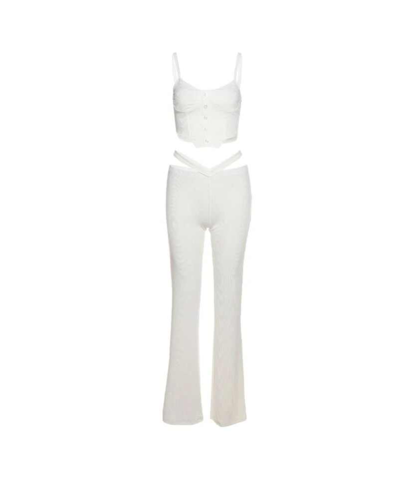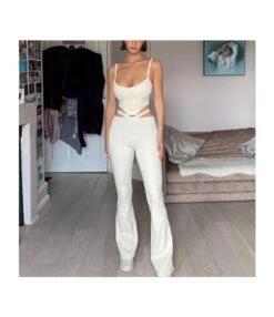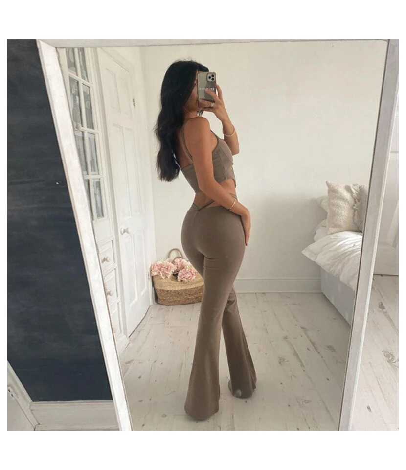Solid Color V-Neck Back Tie Suit Top & Mesh Panel Pants Wholesale Women’S 2 Piece Sets SO5117721