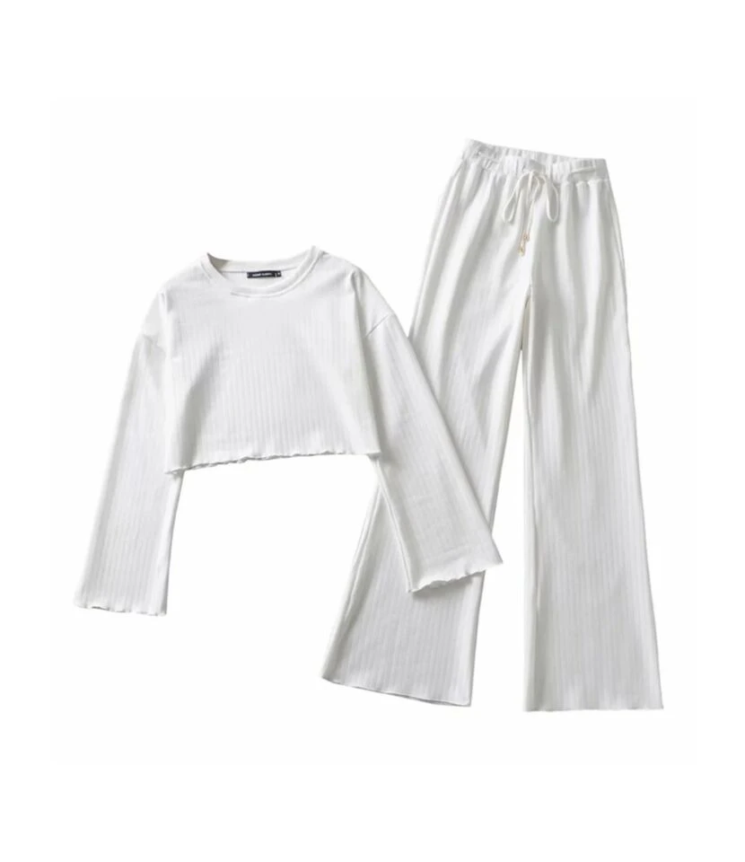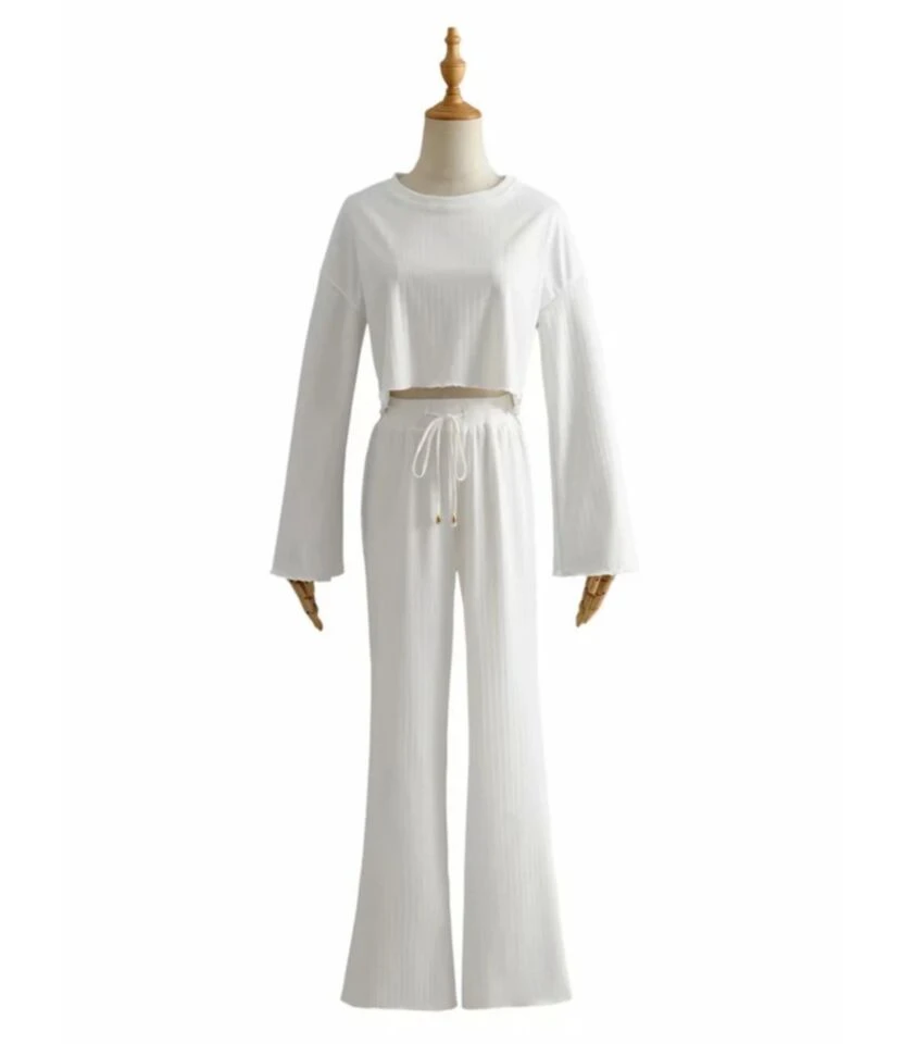 Be the first to review “Two-piece Lettuce Trim Crop Top & Bell Pants Outfit” Cancel reply