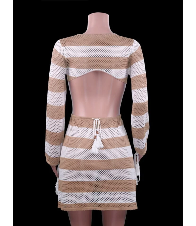 This V-neck Cutout Stripe Knitted Beach is the new fashion trend is for high-end elegance. The version of this product has a high-end feel to it. The v neck cut-out is designed in a lovely and adorable way. The design is relaxed, the length has been altered, and the proportions of the figures enhance the ambiance. It has a fantastic sense of style, but it also catches the joyful and charming charm of ladies brilliantly. It has a feminine V-neck and a relaxed average fit. The bodice features a beautiful stripe knit and a beach dress silhouette to highlight your figure. This lovely beach dress with delicate stripe knit and v neck cut out will take you from the office to dinner. With premium wardrobe basics, we set out to enrich your daily routine. With ageless classics and seasonally essentials crafted from fine stripe knit effortless sophistication, and a minimalist aesthetic it’s a must-have.