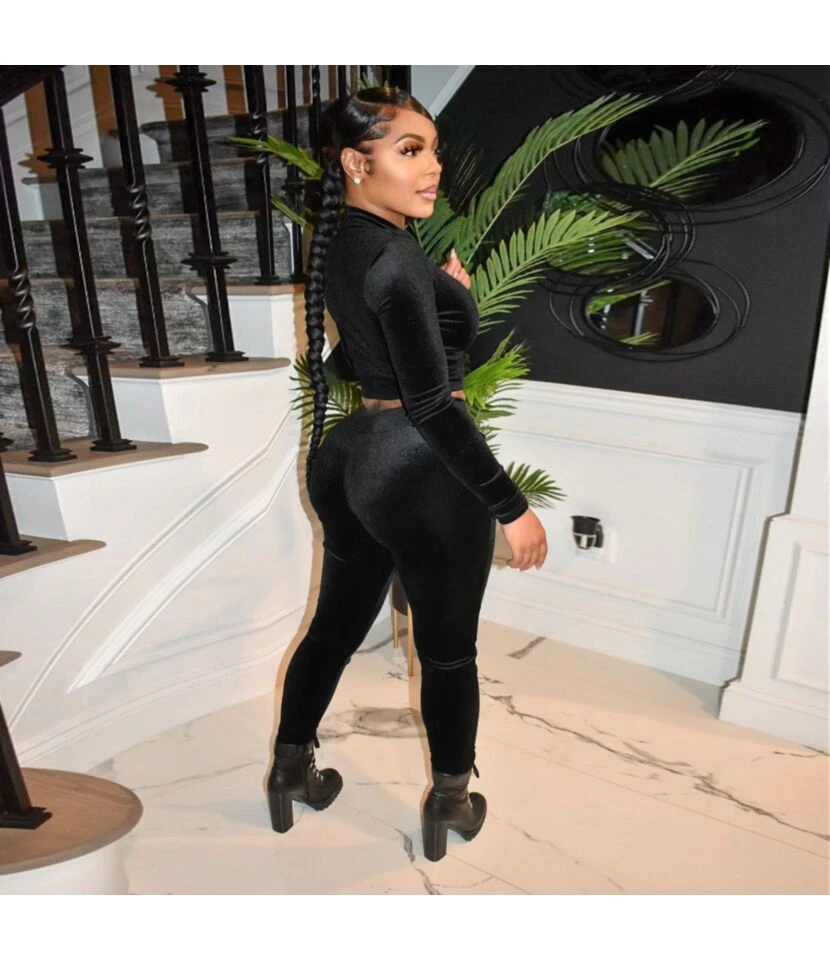 Casual Sports Slim-Fit Solid Long-Sleeved Trousers Two-Piece Set Wholesale Women Clothes SOV463675