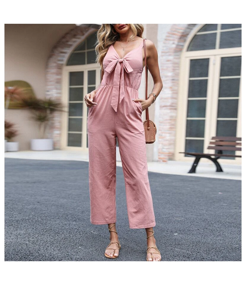 Be the first to review “Women Cotton Linen Sleeveless V Neck Bowknot Wholesale Jumpsuits With Pockets SJN580622” Cancel reply