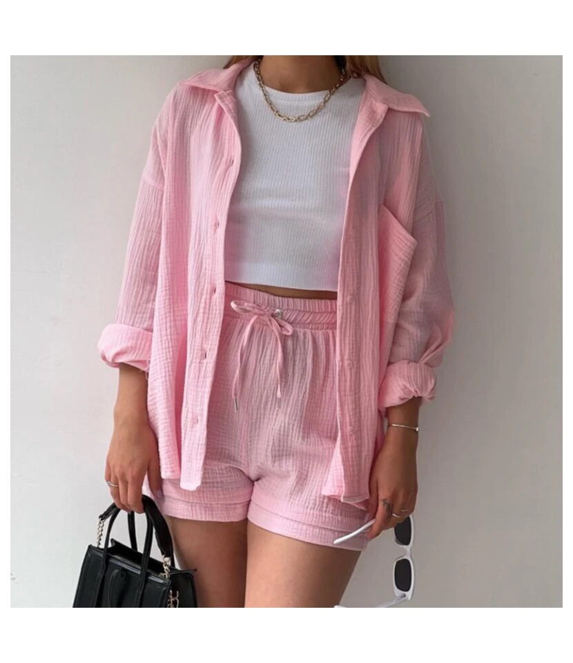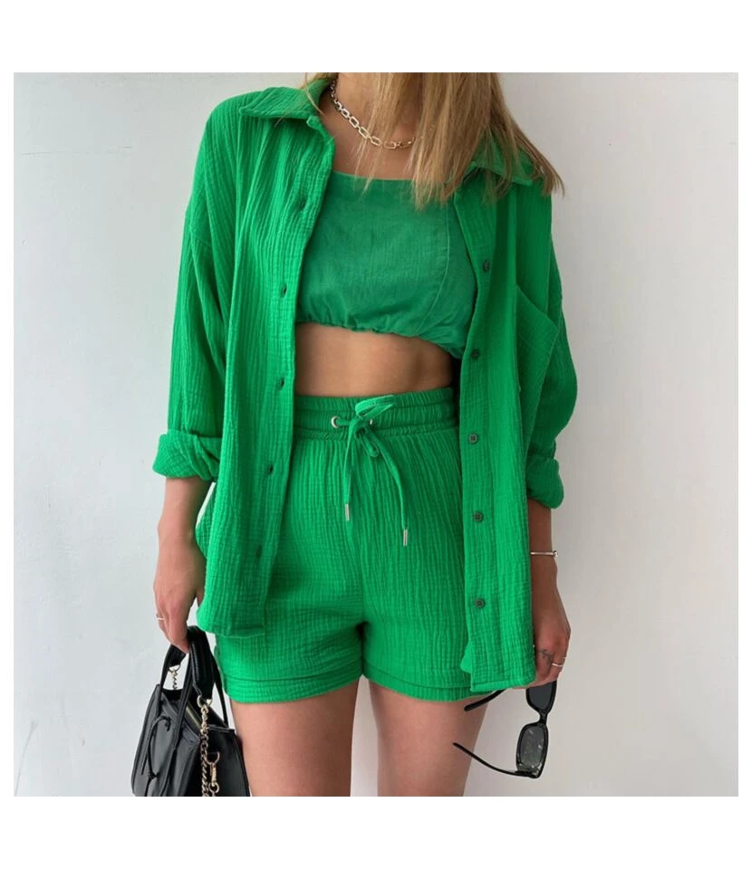 Pleated Printed Cardigan Crop Tops Shorts Three-Piece Set Wholesale Women’S Clothing N46623033000005