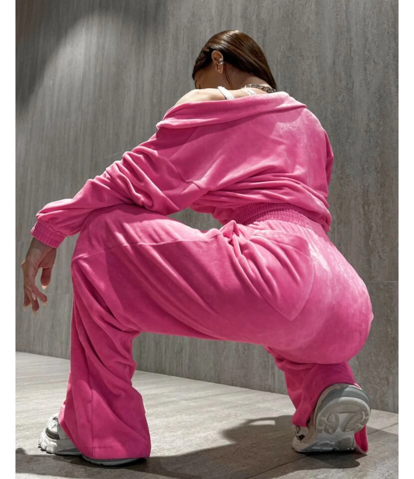 Velvet Zip Top & Drawstring Pants Solid Color Womens 2 Piece Sets Wholesale Workout Clothes SO203907